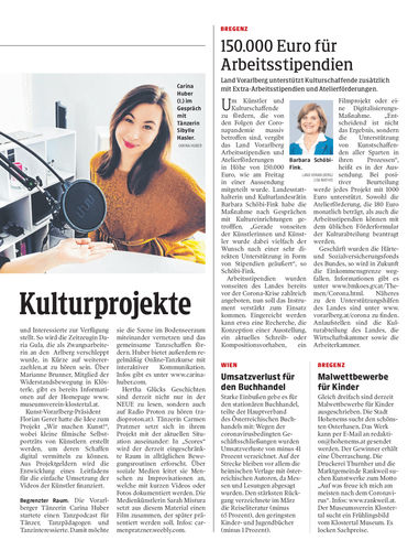 Land Vorarlberg unterstützt Kulturschaffende zusätzlich mit Extra-Arbeitsstipendien und Atelierförderungen.