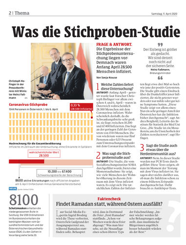 Frage & Antwort. Die Ergebnisse der Stichprobenuntersuchung liegen vor: Demnach waren Anfang April 28.500 Menschen infiziert. Von Sonja Krause