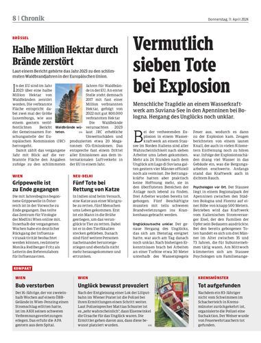 Menschliche Tragödie an einem Wasserkraftwerk am Suviana-See in den Apenninen bei Bologna. Hergang des Unglücks noch unklar.