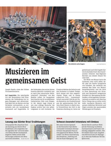 Am Dienstag war das traditionsreiche Kammerorchester Camerata Salzburg mit der Cellistin Julia Hagen in Dornbirn zu erleben.