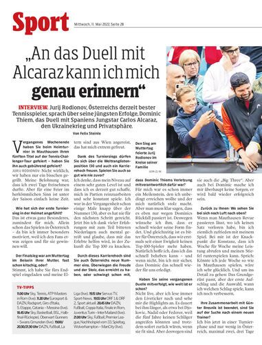 Jurij Rodionov, Österreichs derzeit bester Tennisspieler, sprach über seine jüngsten Erfolge, Dominic Thiem, das Duell mit Spaniens Jungstar Carlos Alcaraz, den Ukrainekrieg und Privatsphäre. Von Felix Steinle