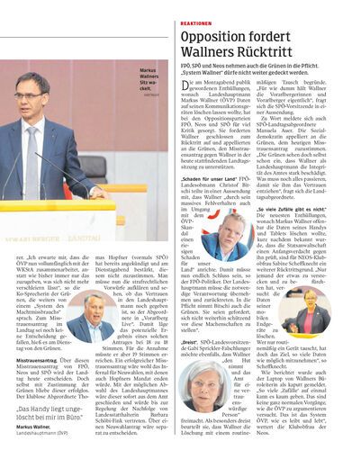 FPÖ, SPÖ und Neos nehmen auch die Grünen in die Pflicht.„System Wallner“ dürfe nicht weiter gedeckt werden.