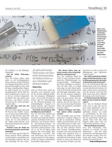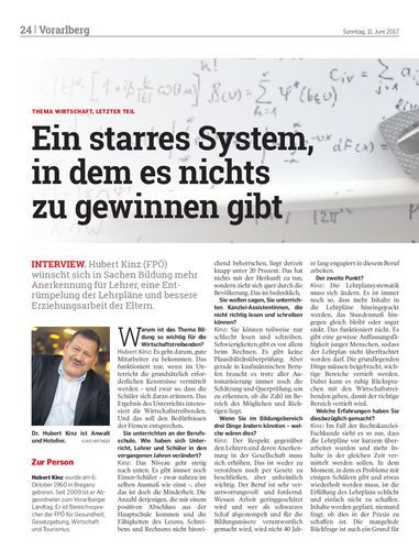Interview. Hubert Kinz (FPÖ)wünscht sich in Sachen Bildung mehr Anerkennung für Lehrer, eine Entrümpelung der Lehrpläne und bessere Erziehungsarbeit der Eltern.