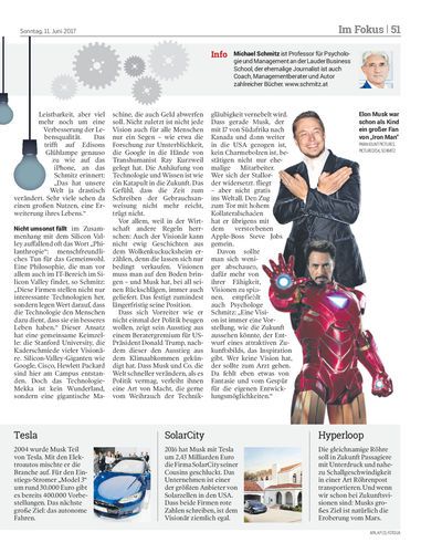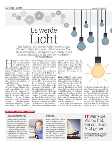 Ihre Heimat: das Silicon Valley. Ihre Mission: Die Welt retten. Warum uns Visionäre wie Elon Musk faszinieren und was wir von ihnen lernen können. Einblicke in die Welt der Vordenker. Von Susanne Rakowitz