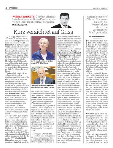 WIENER PARKETT. ÖVP hat offenbar kein Interesse an Griss-Kandidatur – wegen ihrer zu liberalen Positionen. Michael Jungwirth