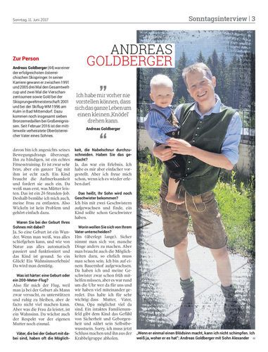 Vom Schanzentisch zum Wickeltisch: der ehemalige Skisprungstar Andreas Goldberger in seiner neuen Rolle als Jungpapa. Ein Telemark zwischen Verantwortung und Vorbild. Von Klaus Höfler