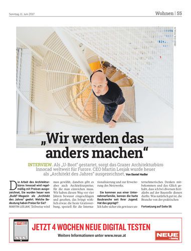 Interview. Als „U-Boot“ gestartet, sorgt das Grazer Architekturbüro Innocad weltweit für Furore. CEO Martin Lesjak wurde heuer als „Architekt des Jahres“ ausgezeichnet. Von Daniel Hadler