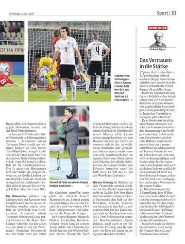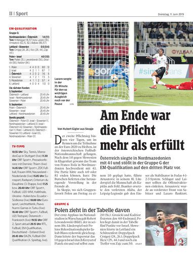 fussball. Österreich feierte in der EM-Qualifikation gegen Nordmazedonien einen verdienten Erfolg. Marko Arnautovic traf dabei doppelt. Damit springt die Auswahl von Trainer Franco Foda auf den dritten Tabellenrang. Sportteil APA