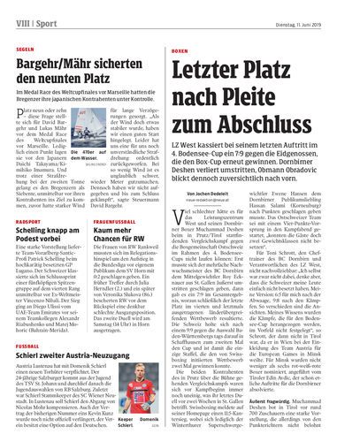 LZ West kassiert bei seinem letzten Auftritt im 4. Bodensee-Cup ein 7:9 gegen die Eidgenossen, die den Box-Cup erneut gewinnen. Dornbirner Deshen verliert umstritten, Obmann Obradovic blickt dennoch zuversichtlich nach vorn.
