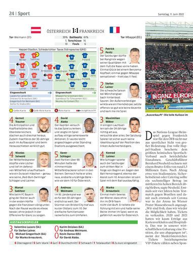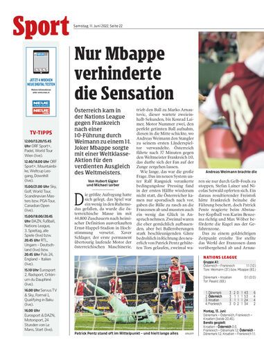 Österreich kam in der Nations League gegen Frankreich nach einer 1:0-Führung durch Weimann zu einem 1:1. Joker Mbappe sorgte mit einer Weltklasse-Aktion für den verdienten Ausgleich des Weltmeisters.