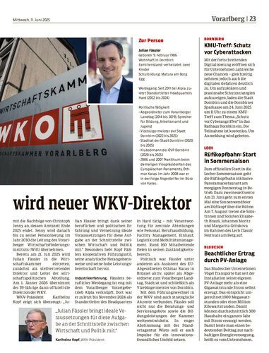 Dornbirns Ex-Vizebürgermeister Julian Fässler übernimmt zunächst die wirtschaftspolitische Abteilung – operative Führung ab 2026.