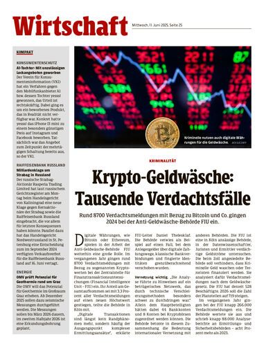 Rund 8700 Verdachtsmeldungen mit Bezug zu Bitcoin und Co. gingen 2024 bei der Anti-Geldwäsche-Behörde FIU ein.