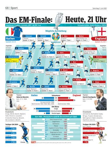 Das finale Euro-Duell zwischen Italien und England endet im Vorspiel mit einem klaren Unentschieden. Hochspannung ist garantiert. Von Hubert Gigler