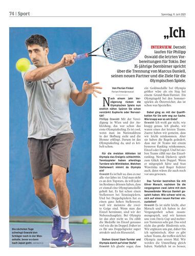 Interview. Derzeit laufen für Philipp Oswald die letzten Vorbereitungen für Tokio. Der 35-jährige Dornbirner spricht über die Trennung von Marcus Daniell, seinen neuen Partner und die Ziele für die Olympischen Spiele.