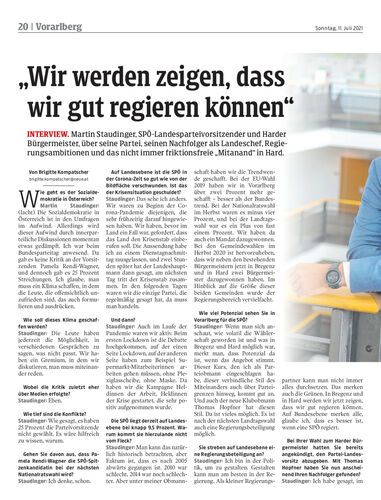 Interview. Martin Staudinger, SPÖ-Landesparteivorsitzender und Harder Bürgermeister, über seine Partei, seinen Nachfolger als Landeschef, Regierungsambitionen und das nicht immer friktionsfreie „Mitanand“ in Hard.