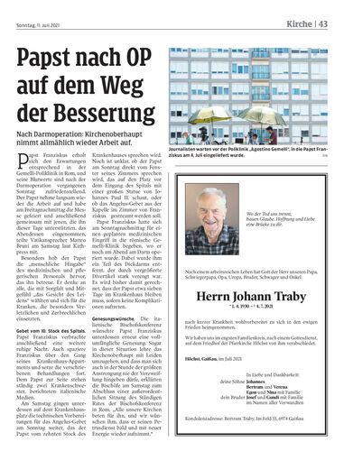 Nach Darmoperation: Kirchenoberhaupt nimmt allmählich wieder Arbeit auf.