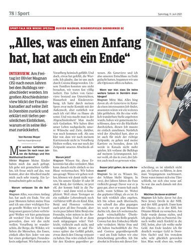 Interview. Am Freitag ist Olivier Magnan (35) nach neun Jahren bei den Bulldogs verabschiedet worden. Im großen Abschiedsinterview blickt der Frankokanadier auf seine Zeit in Dornbirn zurück und erklärt mit tiefen persönlichen Einblicken, warum er in seine Heimat zurückkehrt.