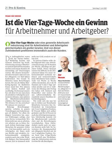 Eine Vier-Tage-Woche oder eine generelle Arbeitszeitreduzierung sind für Arbeitnehmer und Arbeitgeber gleichermaßen ein großer Gewinn. Und von dieser Zufriedenheit profitieren letztendlich auch die Kunden.