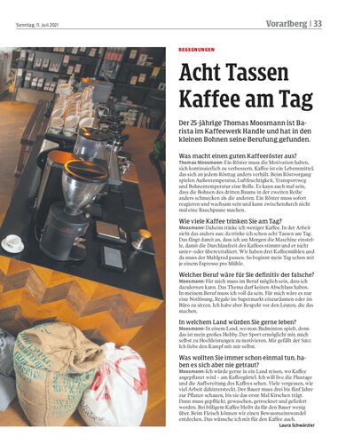 Der 25-jährige Thomas Moosmann ist Barista im Kaffeewerk Handle und hat in den kleinen Bohnen seine Berufung gefunden.