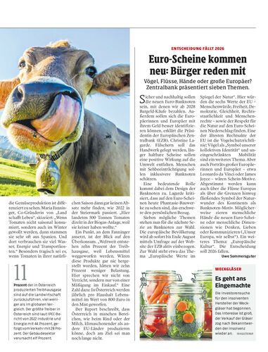 Vögel, Flüsse, Hände oder große Europäer? Zentralbank präsentiert sieben Themen.