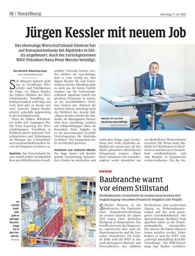 Der ehemalige Wirtschaftsbund-Direktor hat auf Konsulentenbasis bei Alpdrinks in Götzis angeheuert. Auch der zurückgetretene WKV-Präsident Hans Peter Metzler beteiligt.