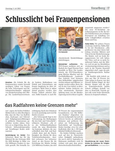 Equal Pension Day in Vorarlberg bereits heute, österreichweit findet er am 4. August statt. Gewerkschaft und Parteien schlagen unterschiedliche Lösungsmöglichkeiten vor.