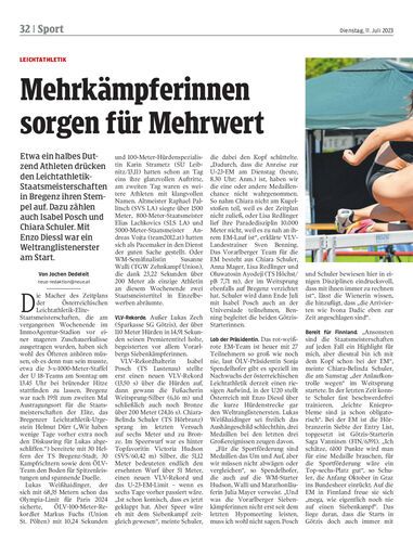 Etwa ein halbes Dutzend Athleten drücken den Leichtathletik-Staatsmeisterschaften in Bregenz ihren Stempel auf. Dazu zählen auch Isabel Posch und Chiara Schuler. Mit Enzo Diessl war ein Weltranglistenerster am Start.