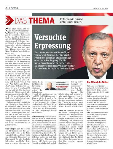Der heute startende Nato-Gipfel verspricht Brisanz. Der türkische Präsident Erdoğan stellt nämlich eine neue Bedingung für die Nato-Erweiterung. Er fordert eine EU-Beitrittsperspektive als Preis für Schwedens Aufnahme in die Allianz.