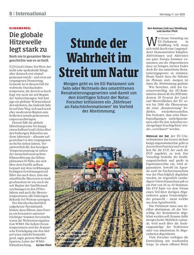 Morgen geht es im EU-Parlament um Sein oder Nichtsein des umstrittenen Renaturierungsgesetzes und damit um den künftigen Schutz der Natur. Forscher kritisieren ein „Störfeuer an Falschinformationen“ im Vorfeld der Abstimmung.