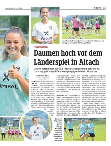 Derzeit bereitet sich das ÖFB-Frauennationalteam in Schruns auf das morgige EM-Qualifikationsspiel gegen Polen in Altach vor.