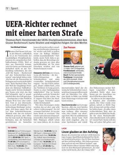Thomas Partl, Vorsitzender der UEFA-Disziplinarkommission, über den Grazer Becherwurf, harte Strafen und mögliche Folgen für den Werfer.