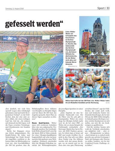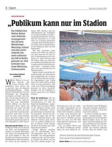 Der Feldkircher Walter Weber vom Athletenmanagement des Götzner Mehrkampf-Meetings schaut sich die Leichtathletik-Szenerie während der EM in Berlin genauer an. Und kritisiert das neue Weltranglistensystem.