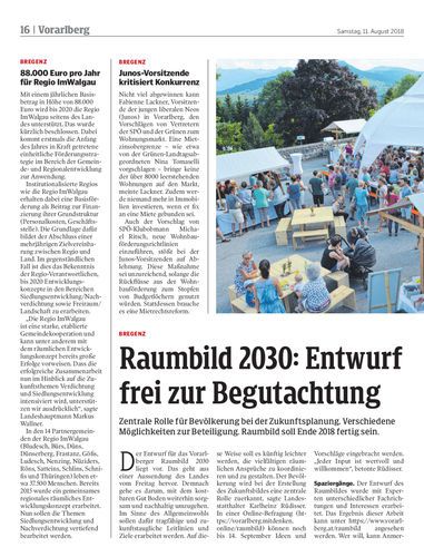 Zentrale Rolle für Bevölkerung bei der Zukunftsplanung. Verschiedene Möglichkeiten zur Beteiligung. Raumbild soll Ende 2018 fertig sein.