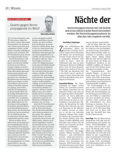 Sternschnuppen können mit viel Geduld und etwas Glück in jeder Nacht bewundert werden. Die Sternschnuppenausbeute ist über das Jahr ungleich verteilt.