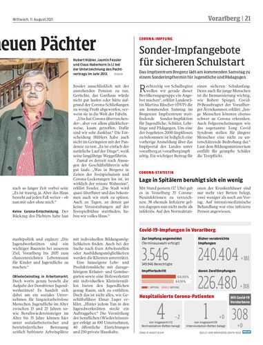 Nach der Ankündigung des Gesundheitsministers versichert Vorarlberg für die Impf-Booster vorbereitet zu sein.