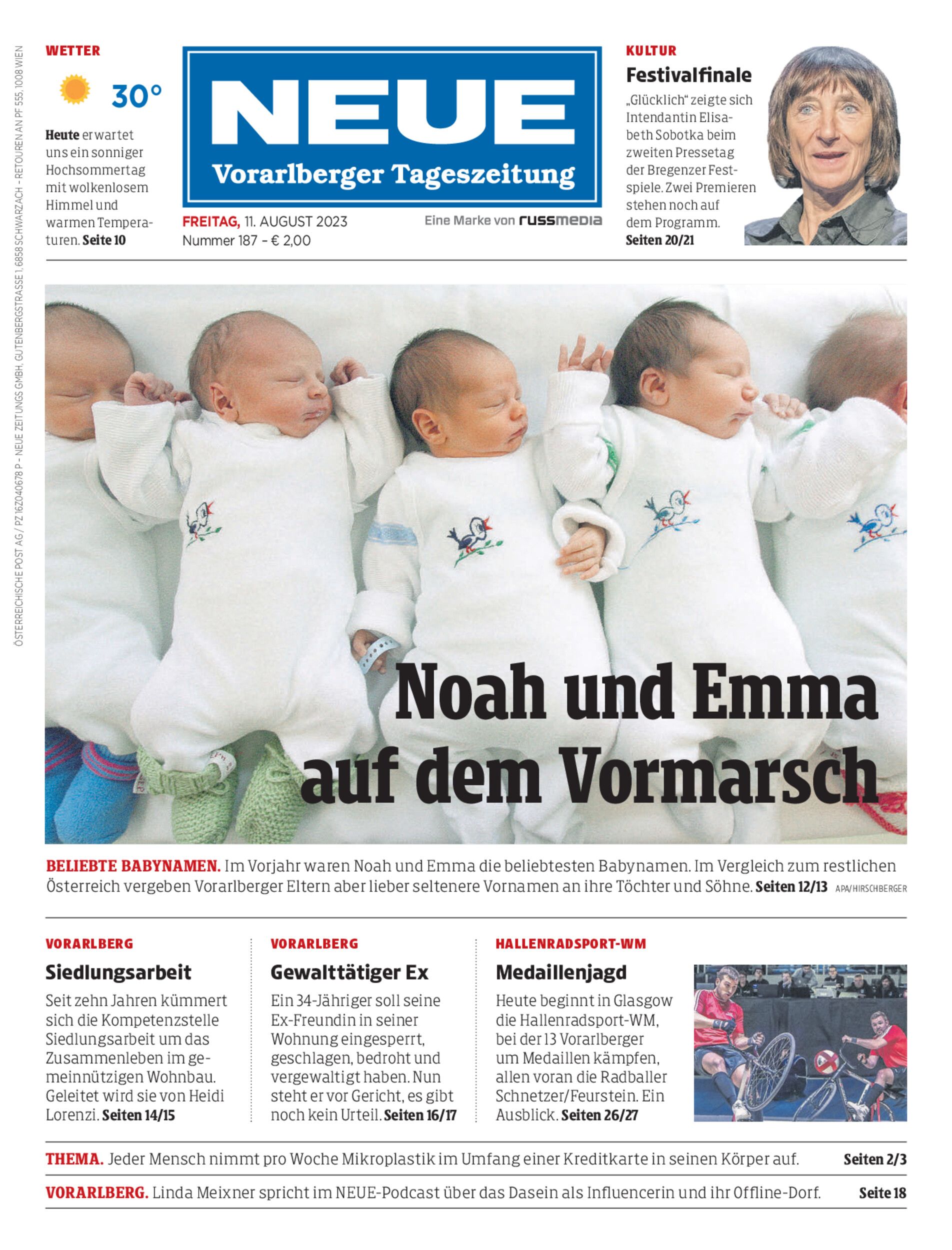 Noah und Emma setzen bei den beliebtesten Kindernamen Vorarlbergs ihren Höhenflug fort. Das spiegelt den Trend im Bund aber nur teilweise wider.