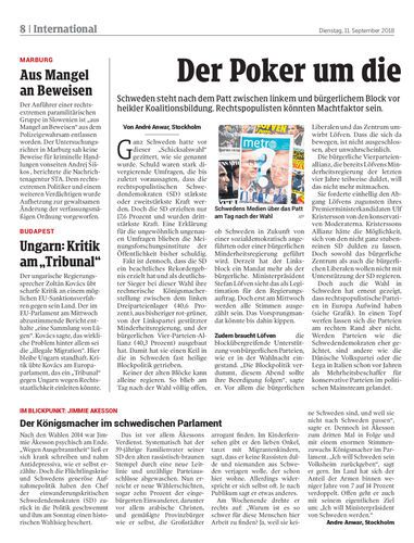 Schweden steht nach dem Patt zwischen linkem und bürgerlichem Block vor heikler Koalitionsbildung. Rechtspopulisten könnten Machtfaktor sein.