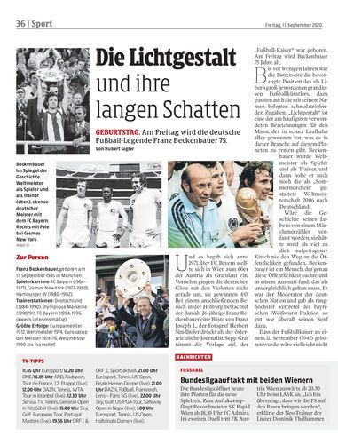 geburtstag. Am Freitag wird die deutsche Fußball-Legende Franz Beckenbauer 75. Von Hubert Gigler