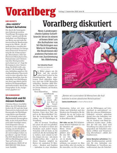 Neos-Landessprecherin Sabine Scheffknecht bittet in einem offenen Brief um die Aufnahme von 50 Flüchtlingen aus Moria in Vorarlberg. Die Reaktionen der anderen Parteien reichen von Zustimmung bis Ablehnung.