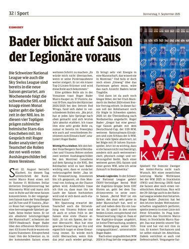 Die Schweizer National League wie auch die Sky Swiss League sind bereits in die neue Saison gestartet, am Wochenende folgt die schwedische SHL und knapp einen Monat später geht die Spielzeit in der NHL los. In diesen vier Topligen prägen zahlreiche heimische Stars das Geschehen mit. Im Gespräch mit Roger Bader analysiert der Teamchef die Rollen der rot-weiß-roten Aushängeschilder bei ihren Vereinen.