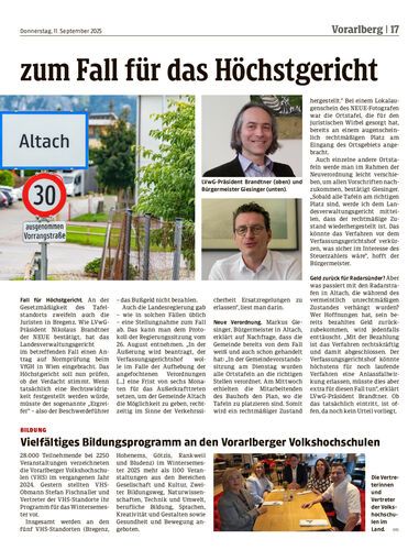 Der Verfassungsgerichtshof muss über die Rechtmäßigkeit einer Ortstafel mit Geschwindigkeitsbegrenzung in Altach entscheiden. Anlass ist eine Radarstrafe.