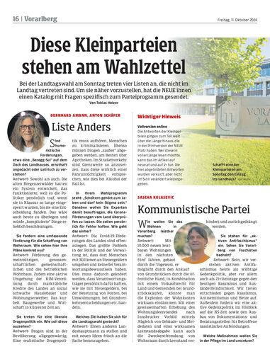 Bei der Landtagswahl am Sonntag treten vier Listen an, die nicht im Landtag vertreten sind. Um sie näher vorzustellen, hat die NEUE ihnen einen Katalog mit Fragen spezifisch zum Parteiprogramm gesendet.
