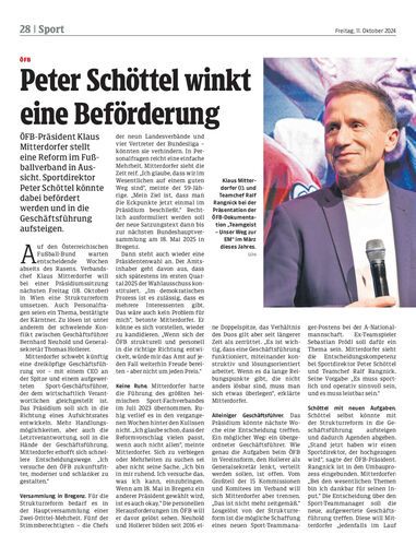 ÖFB-Präsident Klaus Mitterdorfer stellt eine Reform im Fußballverband in Aussicht. Sportdirektor Peter Schöttel könnte dabei befördert werden und in die Geschäftsführung aufsteigen.