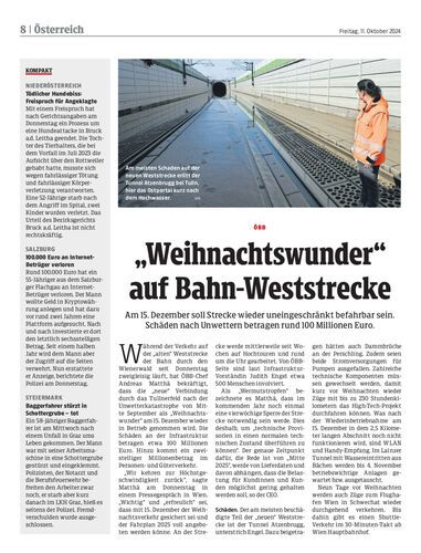 Am 15. Dezember soll Strecke wieder uneingeschränkt befahrbar sein. Schäden nach Unwettern betragen rund 100 Millionen Euro.