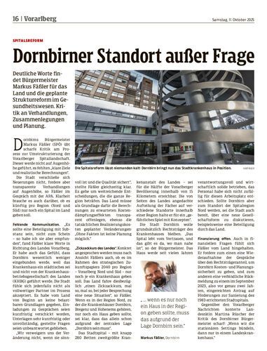 Deutliche Worte findet Bürgermeister Markus Fäßler für das Land und die geplante Strukturreform im Gesundheitswesen. Kritik an Verhandlungen, Zusammenlegungen und Planung.