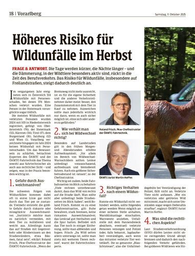 Frage & Antwort. Die Tage werden kürzer, die Nächte länger – und die Dämmerung, in der Wildtiere besonders aktiv sind, rückt in die Zeit des Berufsverkehrs. Das Risiko für Wildunfälle, insbesondere auf Freilandstraßen, steigt dadurch deutlich an.