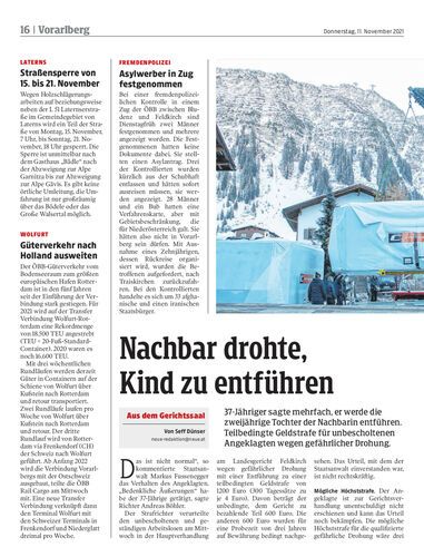 37-Jähriger sagte mehrfach, er werde die zweijährige Tochter der Nachbarin entführen. Teilbedingte Geldstrafe für unbescholtenen Angeklagten wegen gefährlicher Drohung.
