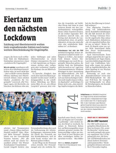 Salzburg und Oberösterreich wollen trotz explodierender Zahlen noch keine weitere Beschränkung für Ungeimpfte.