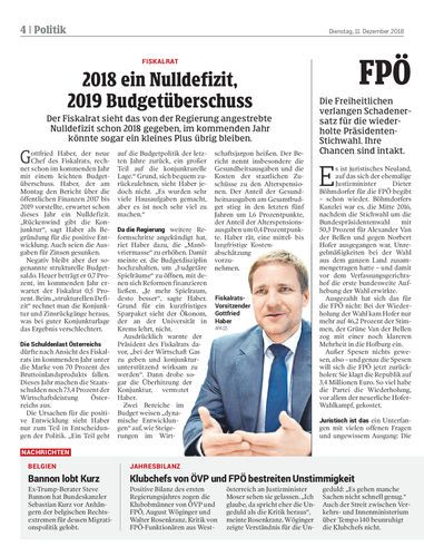 2018 ein Nulldefizit, 2019 Budgetüberschuss