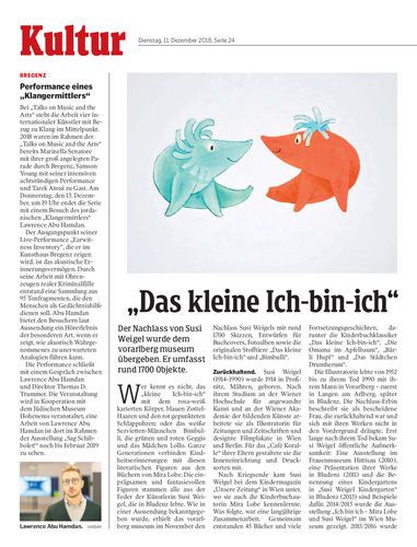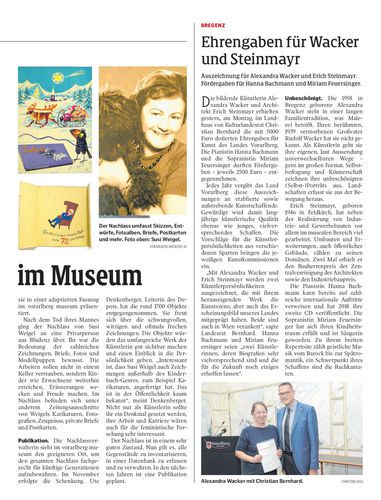 Der Nachlass von Susi Weigel wurde dem vorarlberg museum übergeben. Er umfasst rund 1700 Objekte.